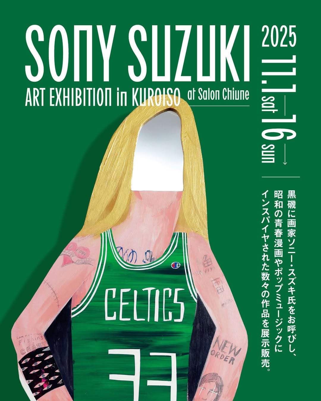 今回salon Chiuneでは、黒磯に画家ソニー・スズキをお呼びし、昭和の青春漫画やポップミュージックにインスパイヤされた数々の作品をsalon ChiuneとNorfolk Galleryの2会場で展示販売いたします。