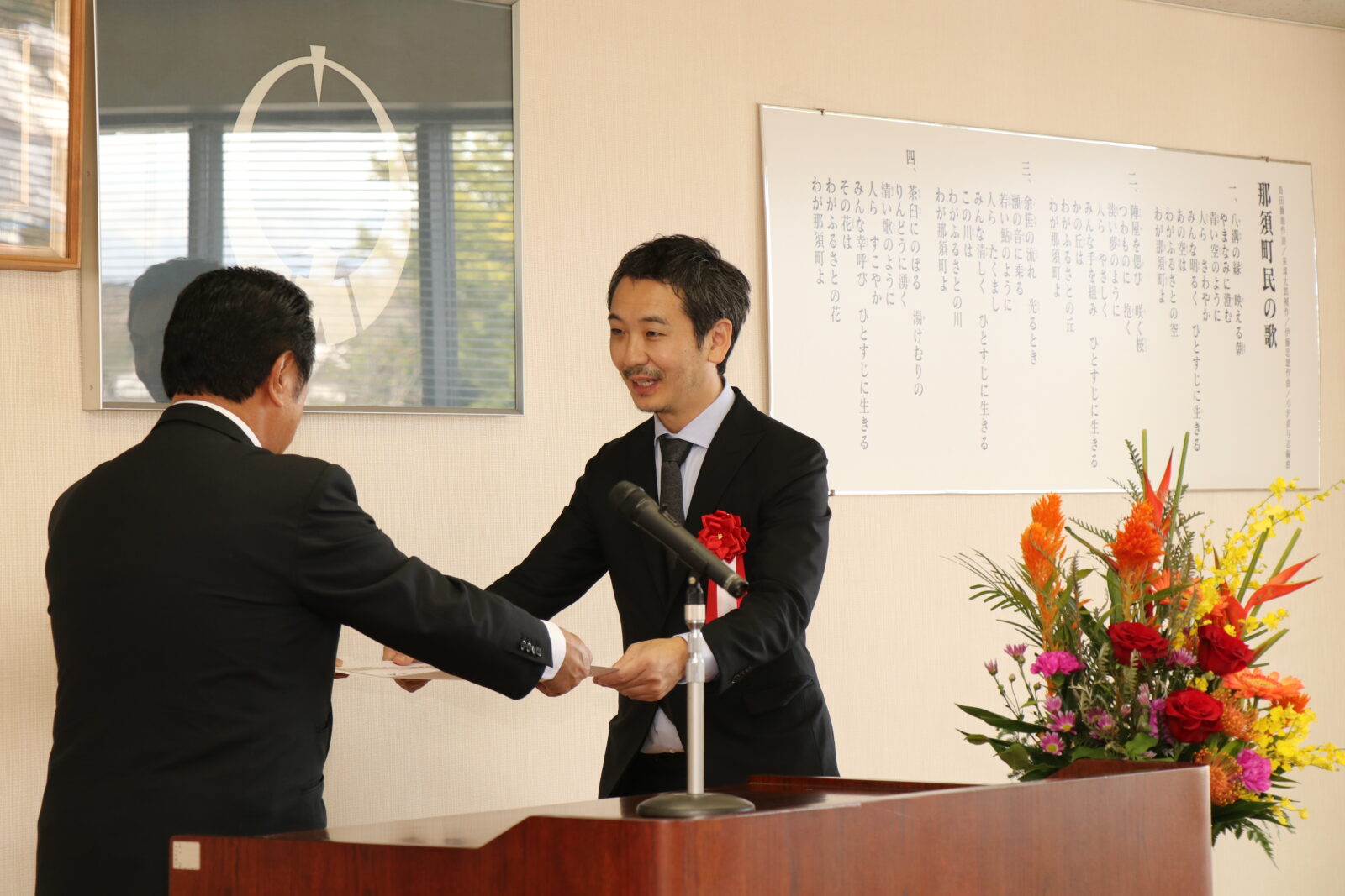 GOOD NEWSが拠点を構える栃木県那須町では、令和7年11月3日に那須町役場で表彰式が開催されました。当社は、那須町内の小・中学校へ「バターのいとこ」「いとこのラスク」を寄贈し、教育行政の振興発展に貢献したと今回の表彰をいただきました。