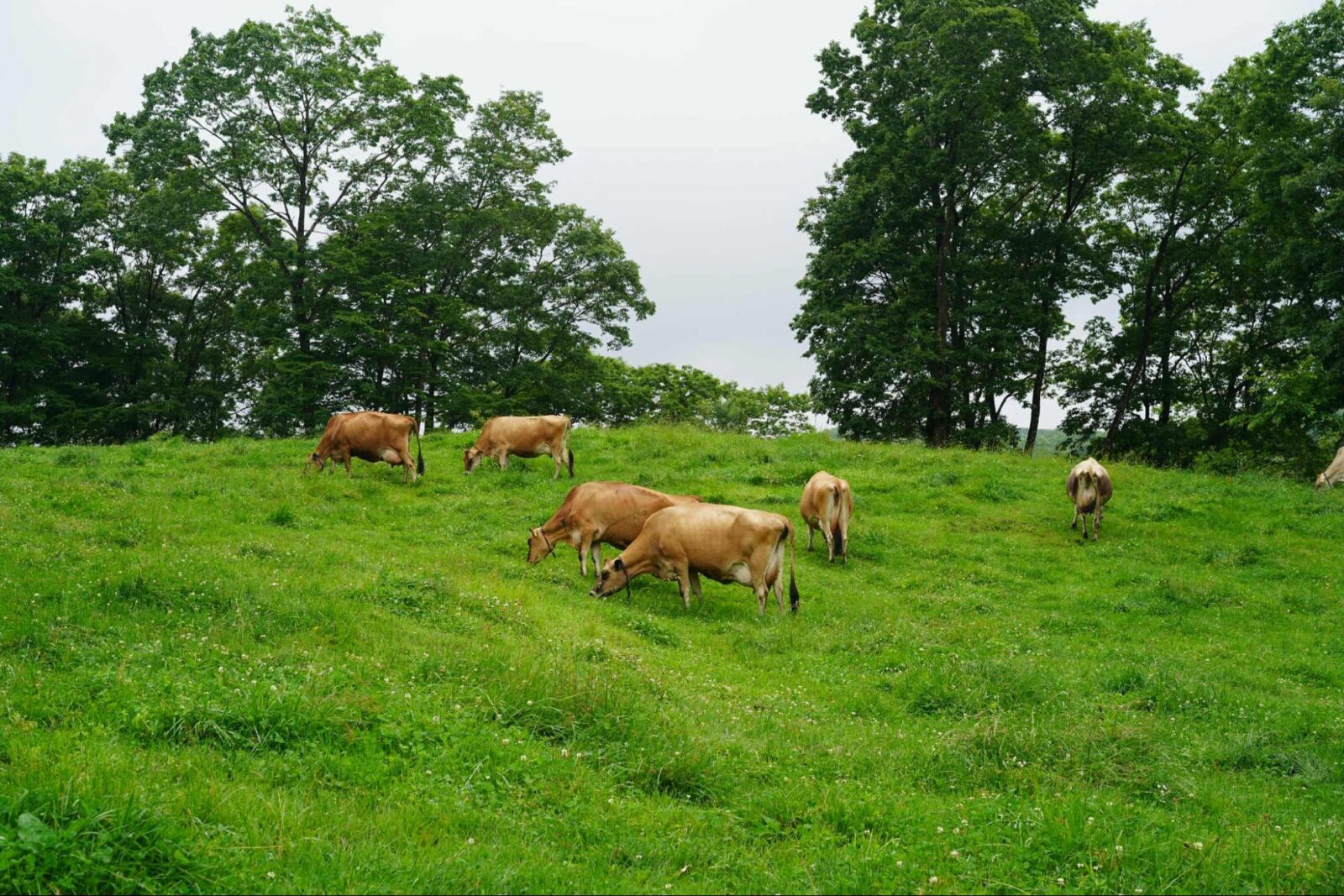 バターのいとこが生まれたきっかけとなったのは、GOOD NEWSの創業者である宮本吾一(みやもとごいち)の友人であり、那須で酪農を営む山川との出逢いでした。山川は学生時代の北海道での搾乳体験で、牛が山に放され草を食べている光景に感銘し、自身も現在「森林ノ牧場」という牧場を営んでいます。日本では白黒斑点模様のホルスタイン種が多い中、森林ノ牧場では茶色い毛並みをしたジャージー牛が放牧されており、1頭1頭に可愛い名前が付けられのびのびと育てられています。