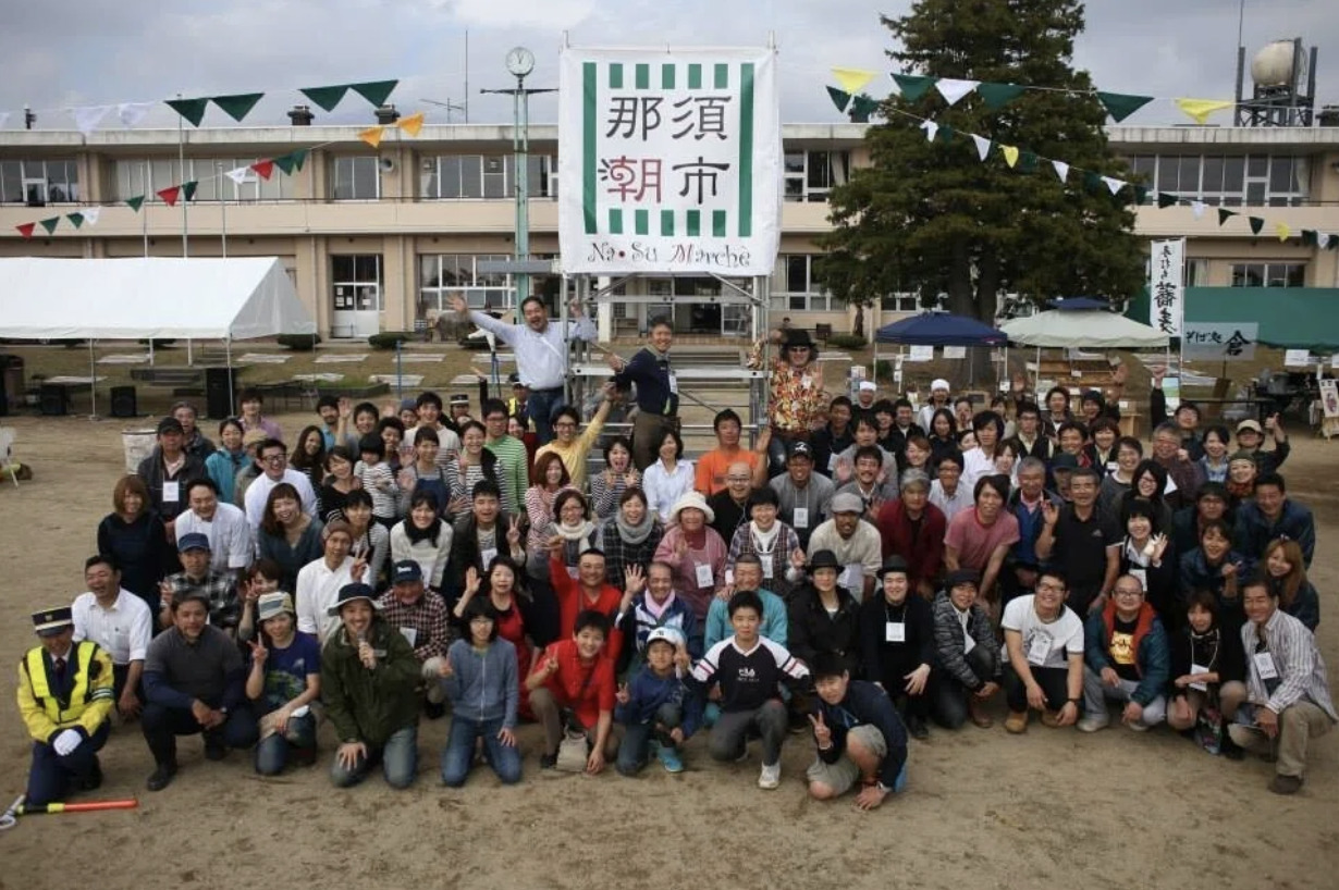 バターのいとこ誕生のきっかけとなった酪農家との出逢い。さらにさかのぼると、宮本と山川の出逢いは那須で開催していた「朝市」でした。宮本は東京で生まれ、国内外で旅をした後、リゾートバイトをきっかけに那須を訪れました。来た当初は特別な理由があったわけではなかったけれど、気づけば那須に移住して25年。農家や酪農家が多い那須で農家さんたち1人ずつに声をかけていって、共感してくれた農家さんが軽トラの荷台に野菜を積んで駐車場に集まってきてくれて、そのまま販売する形で朝市を開催しました。小さな集まりがやがて大きくなり、最終的には5,000人のお客さんが来るような場になりました。