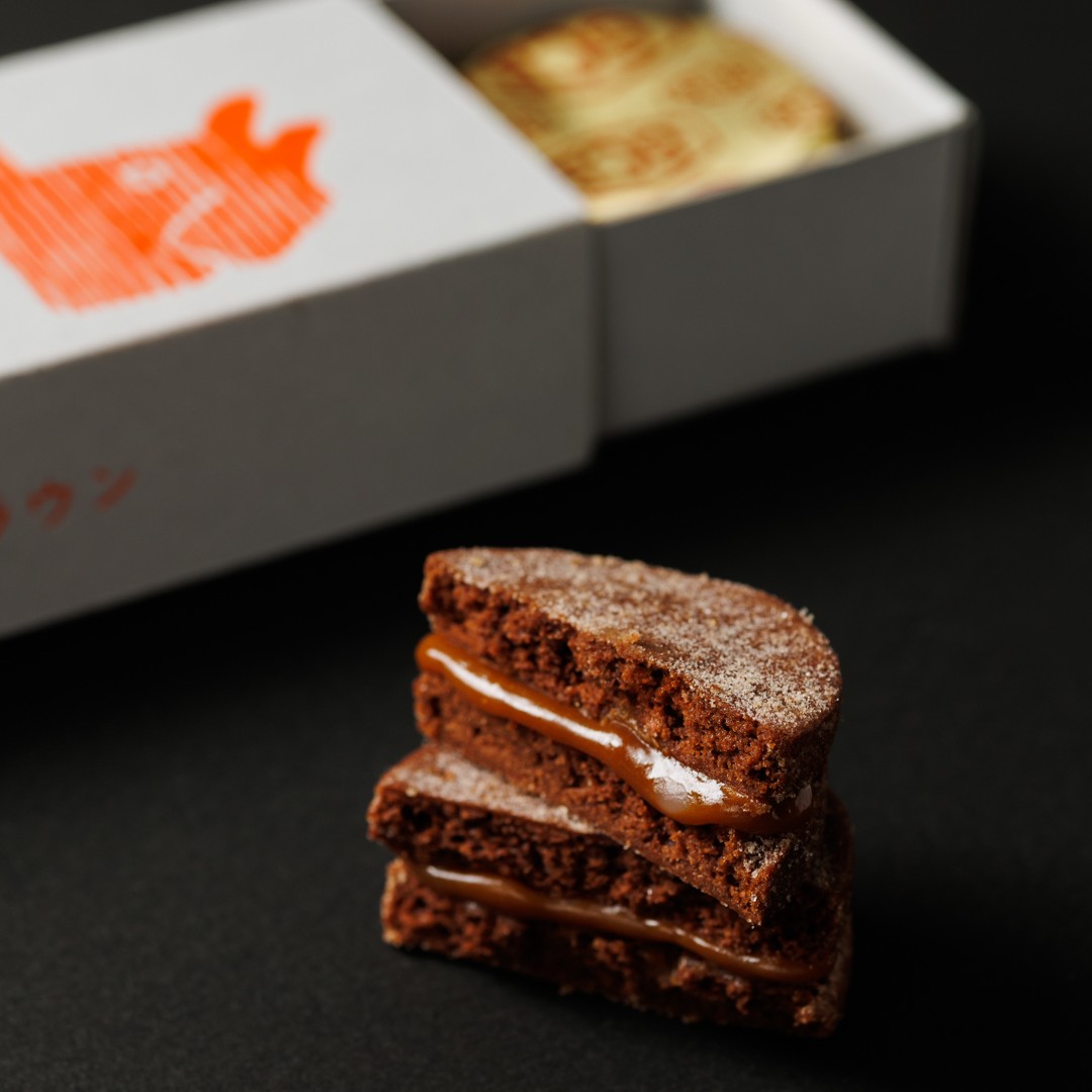 バター香るガレットブルトンヌにカカオを合わせ、あまずっぱいブラウンチーズキャラメルをサンドしました。
