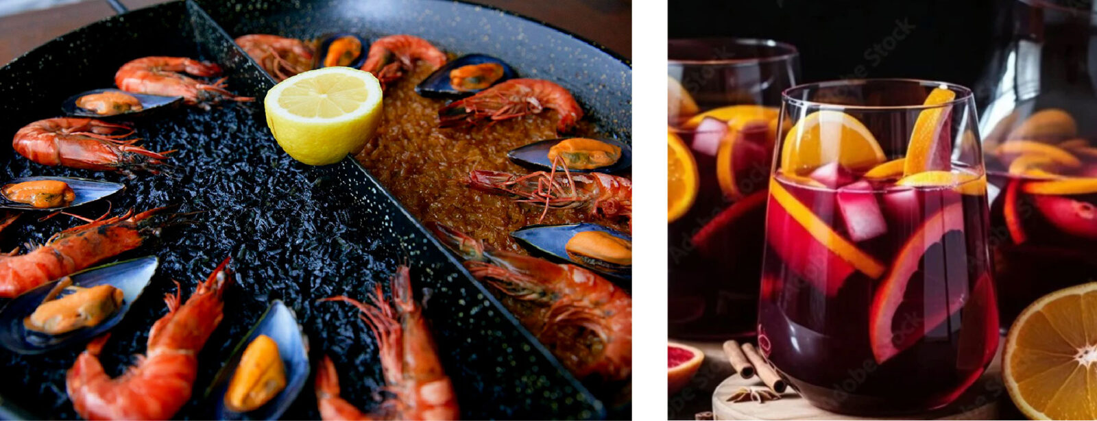 *パエリア各種(魚介、イカスミ、ソーセジとキノコ等)、ホットサングリア、スペインワイン