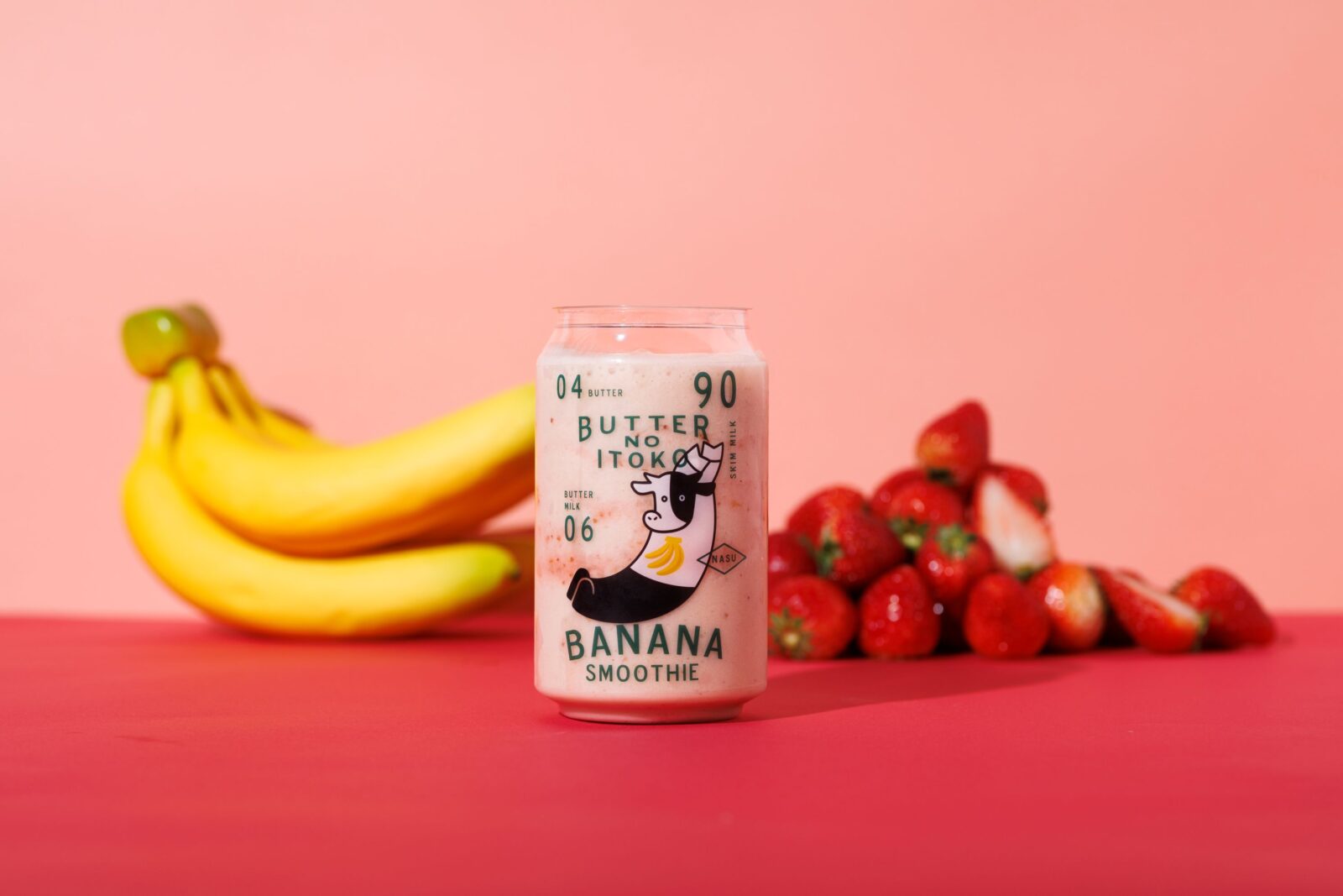田辺農園の濃厚バナナと自家製いちごソースの相性抜群!バナナの優しい甘さといちご本来の甘酸っぱさがベストマッチ!この時期だけ味わえる贅沢な一杯です✨(バターのいとこカフェ限定)