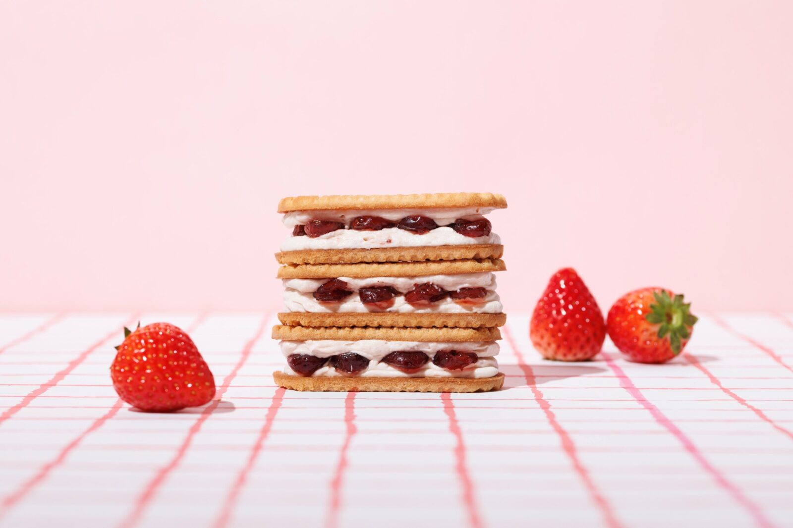 バターのいとこいちご味で使用しているいちごの生地と濃厚いちごジャムを使用しています🍓