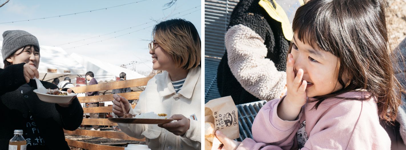 おいしい食事とたくさんの笑顔。これこそがGOOD NEWSの目指す「大きな食卓」の風景です。冬の澄んだ空気の中、全国の出店者の方々と来場者の皆さんが一体となり、まるで森の中でひとつの大きな食卓を囲んでいるかのような、あたたかく幸せな空気に包まれた「那須冬市 2026」。