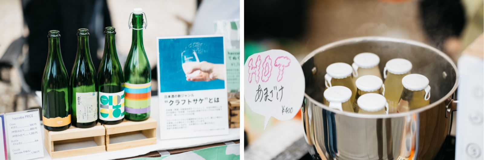 日本酒の伝統製法にホップなどを掛け合わせた、自由で新しい「クラフトサケ」の酒蔵。フルーツを思わせる華やかな香りと軽やかな飲み口で、これは新しいハーモニー!次から次へと試したくなる。熱々のホット甘酒は優しい味わいで体を芯からぽかぽかに。